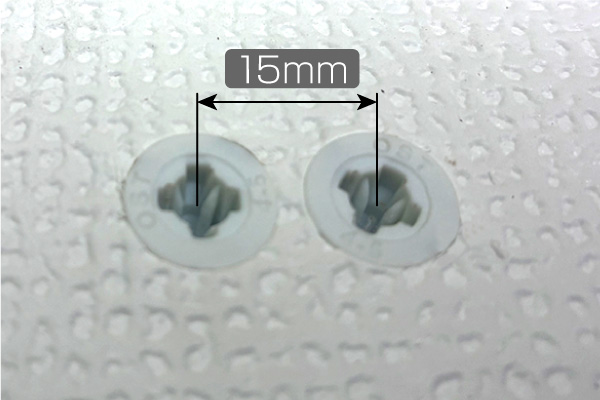 せっこうボード(GB-R)12.5mm厚に、ボードアンカーSGを15mm・20mm・30mmの間隔で2点設置。中心部に荷重をかける。