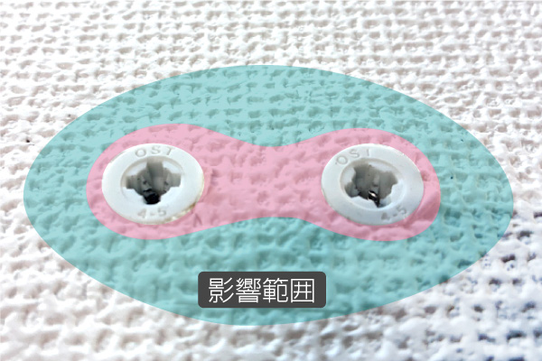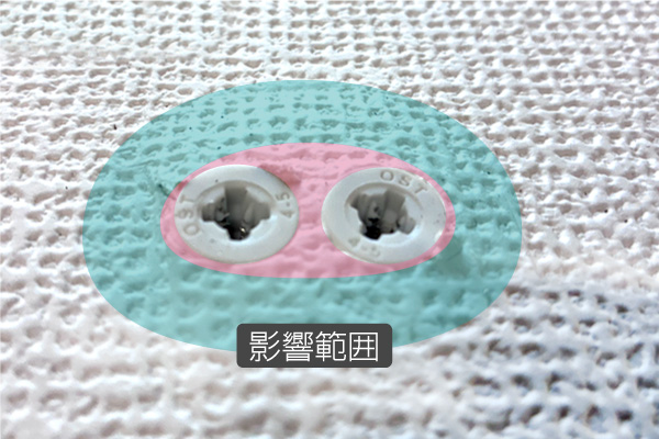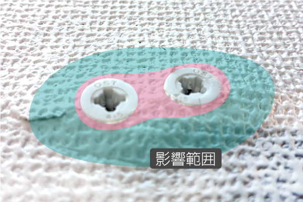 引抜試験後のせっこうボードに及ぼす影響範囲比較