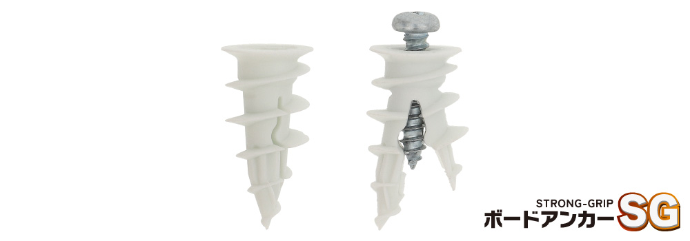 ボードアンカーSGは、下穴不要で施工できる、ねじ込み式せっこうボード用アンカーです。