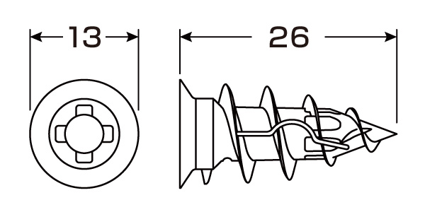 鋭い先端形状で普通せっこうボードに対して下穴無しで確実な位置決めとねじ込みができます。